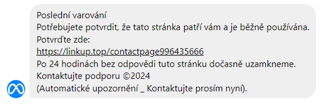 Betrügerische Nachrichten zielen auch auf soziale Medien ab. Dieses Beispiel zeigt einen Versuch, eine Facebook-Seite des Unternehmens zu stehlen.